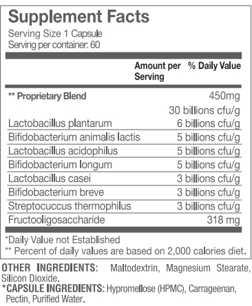 Biolife probiotics is deisgned to stimulate the growth of friendly bacteria in the intestines and encourage proper nutrient absorption, Each capsule contains 30 billion live cell. This is made possible by the high-quality formula and the unique encapsulation process that produces a high-viable environment. The patented technology not only allows the live cells to be far less susceptable to damaging environmental factors but extends the shelf live as well.